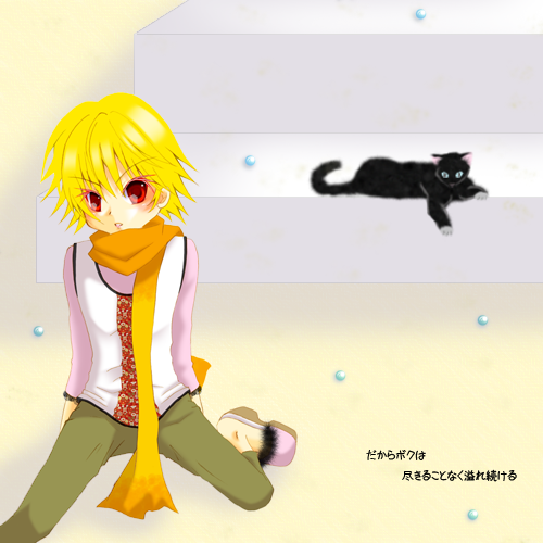 にゃんこが涙、少年(見えなければ少女でも…)が花で